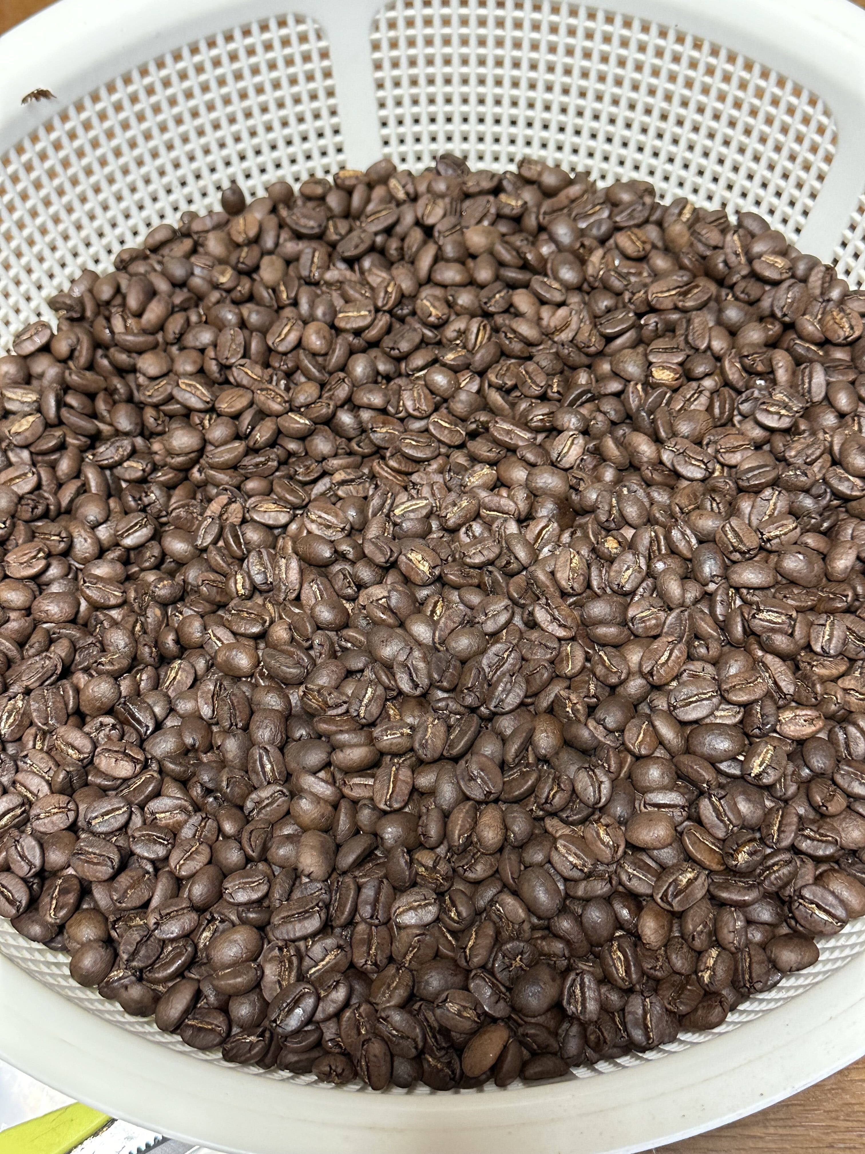 焙煎後はコーヒーの美味しいところを味わっていただく為に焙煎臭を抜くために1~2日おいてから脱酸素剤入りの真空パックにして発送しています